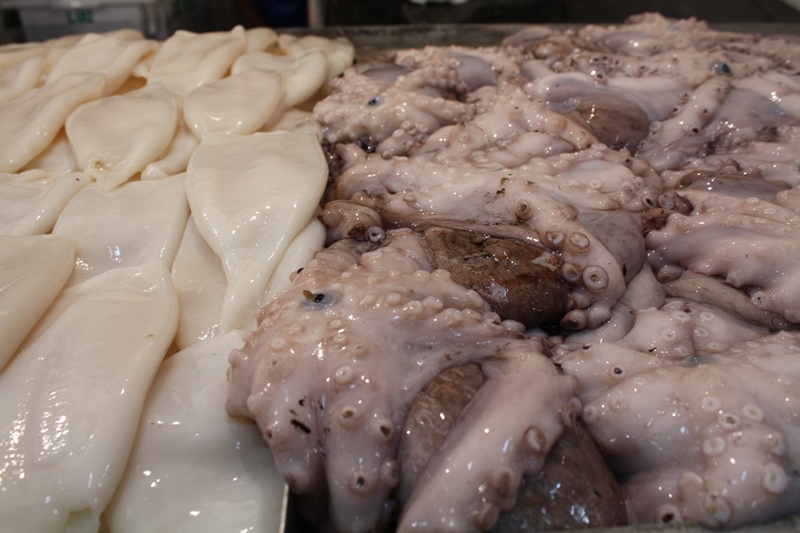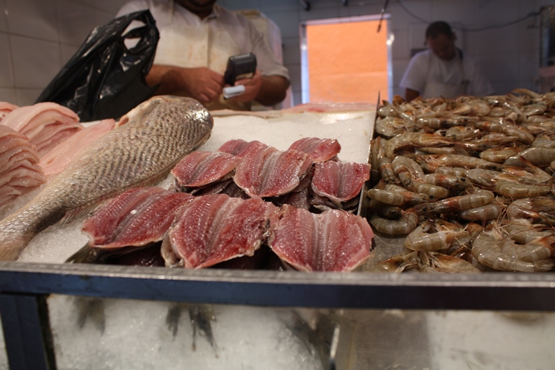 Arriving at the Mercado de Peixe, my eyes didn’t know where to look first. In the display area there were tons of ice and kilos and kilos worth fish, all fresh from the boat and unloaded just a few hours earlier. Big and small fish, fancy and dog fish; sliced, steak, whole; whiting, tuna, salmon, flounder, lobsters, shrimp, and octopus— the variety is endless.