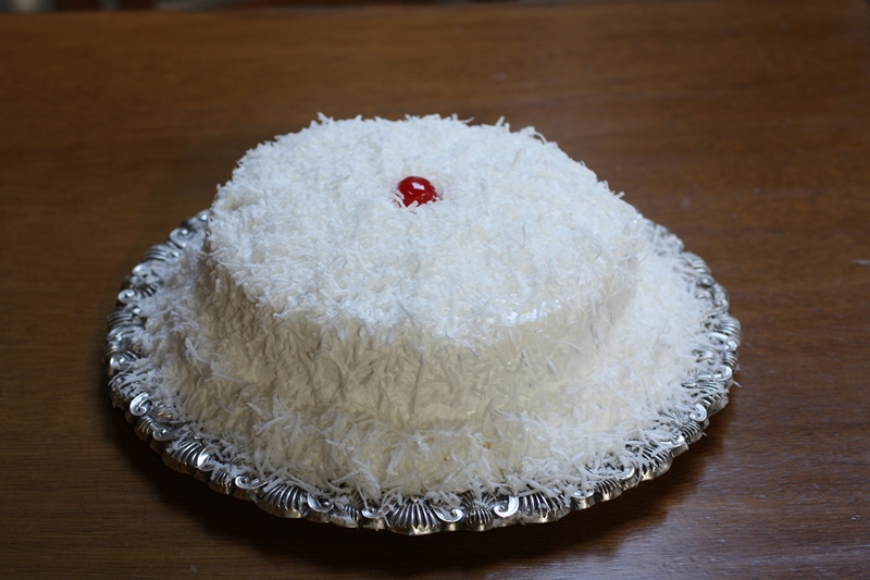As Lucy and I talked over cake, she revealed the secret to such cloudy results. “I’d better get this down”, I thought. “First, she said, there is no flour in the cake; only potato starch. Second, there is no butter in the frosting.” “Ok, go on”, I said to Lucy writing down in a hurry. And finally, “I only use fresh grated coconut.”