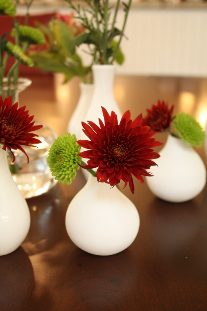 I love these pretty vessels because you can still make a gorgeous flower arrangement without going too high and preventing your guests to seeing each other’s faces at the table.