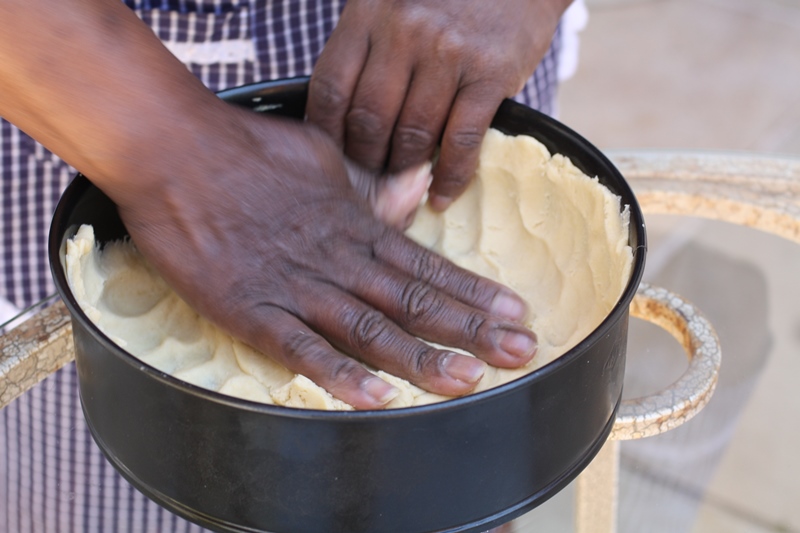 We instantly connected through food. The plastic container she uses to work the dough, the way she crushes garlic instead of chopping, the piece of plastic she uses to flip the top dough, the way she patches the dough into the spring form mold, it all reminds me of a simple world.